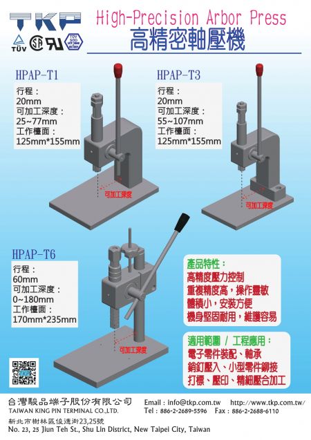 HPAP-T6は多機能手動プレスおよび軸圧機であり、さまざまな部品の圧入、ベアリングの圧入および組立作業に適しています。高い安定性と操作の柔軟性を兼ね備え、異なるサイズと材質の部品の圧入ニーズに対応でき、中型から大型の部品や精密組立に適しています。製造工場、組立ライン、メンテナンス作業で広く使用され、組立精度、生産効率、操作の安全性を向上させる信頼性の高い多目的圧入設備です。